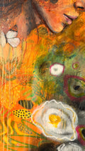 This piece is hand painted with highest quality acrylic, graphite, acrylic inks, collage paper, Posca markers, gold foil, thick glass bead texture, carandache crayons, and spray paint. Back-stapled with a wood framed back and ready to hang on your wall. Hangers already installed. All originals are sealed with varnish to protect the life of the painting. Ships in packaged box bubble wrap and comes with a certificate of authenticity, Handwritten letter from artist with wax seal, and free stickers. We also offer fast shipping via USPS. Women Owned Business. Made in the USA