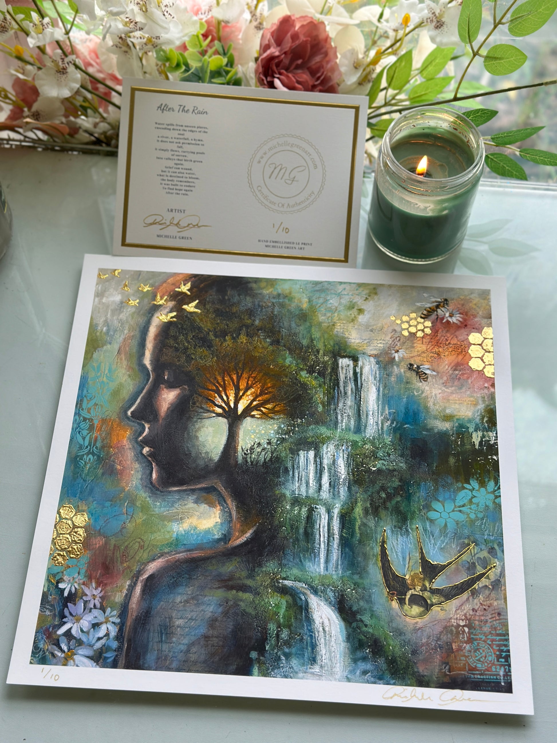 "After The Rain" Limited Edition 24k Gold Hand Embellished Print 12x12