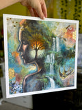 This gorgeous 12x12 one of a kind collectable Archival fine art print is embellished in REAL 24 K GOLD LEAF, signed, numbered, and stamped by emerging artist Michelle Green. Printed on heavy 100% Acid Free cotton rag paper. Printed from my in house fine art archival Giclee printer. Signed and numbered in-studio, colors settling into the fibers in a way that feels not unlike magic. Your artwork will arrive beautifully packaged and ready to be framed (Or you can purchase a frame from me!), along with a Certificate of Authenticity (poetry included), proving your limited edition print’s origin, quality, and value. Only 10 will ever be made! 100% Secured Purchases guaranteed. Carefully packaged to protect the print. We also offer fast shipping via USPS. Women Owned Business. Made in the USA. Looks beautiful in any style frame that you choose!