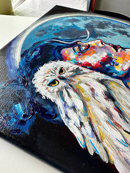 This gorgeous original is a one of a kind collectable. "Blue Moon" is an acrylic painting on 12x12 canvas and is signed and stamped by emerging artist Michelle Green, owner of Mozzafiato Art. 100% Secured Purchases guaranteed.