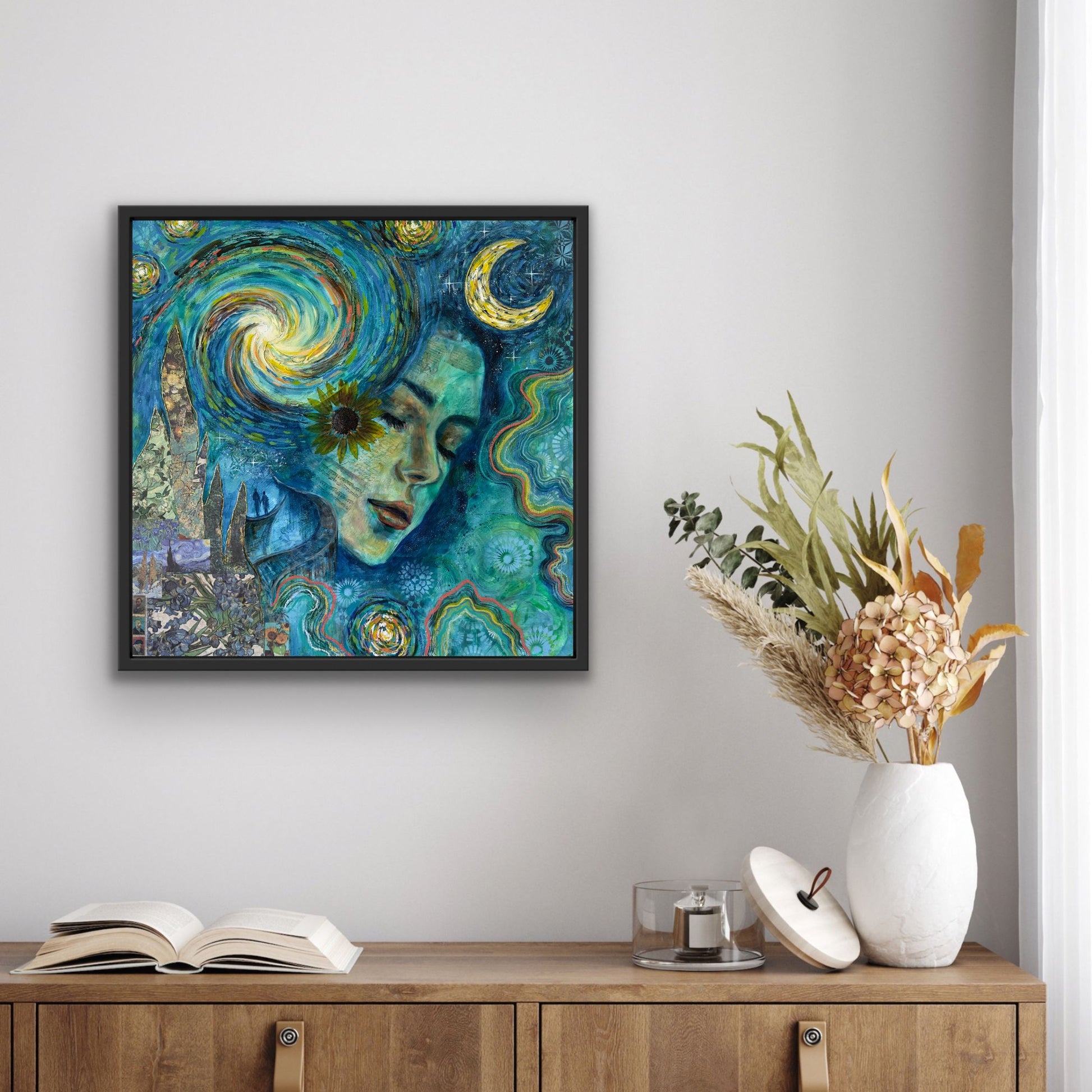 This gorgeous one of a kind collectable Canvas Print is signed by emerging artist Michelle Green. You have the option of getting your canvas print embellished in real 24K gold and thick texture. 100% Secured Purchases guaranteed. Ships in packaged sealed envelope bubble wrapped and comes with a free sticker. We also offer fast shipping via USPS. Women Owned Business. Made in the USA. Looks beautiful on any wall and ready to hang with a sawtooth hanger already installed. Each print is varnished to protect the life of the painting, signed, and stamped with a certificate of authenticity.