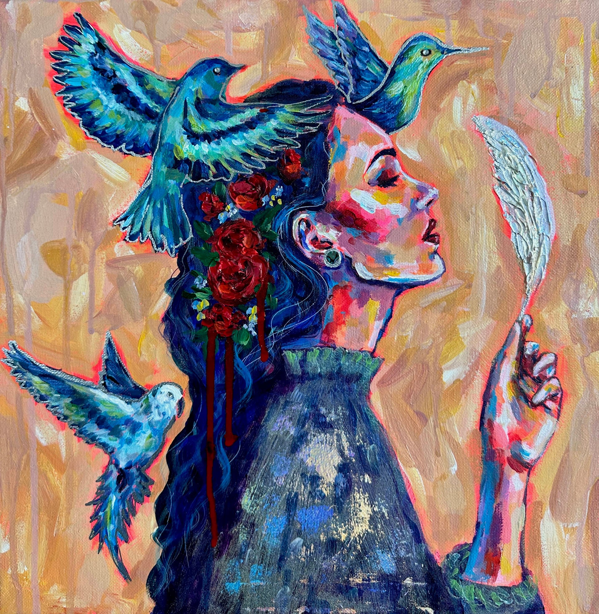 This gorgeous one of a kind collectable Canvas Print is signed by emerging artist Michelle Green. You have the option of getting your canvas print embellished in gold and thick texture. 100% Secured Purchases guaranteed. Ships in packaged sealed envelope bubble wrapped and comes with a free sticker. We also offer fast shipping via USPS. Women Owned Business. Made in the USA. Looks beautiful on any wall and ready to hang with a sawtooth hanger already installed. Each print is varnished to protect the life of the painting, signed, and stamped with a certificate of authenticity.