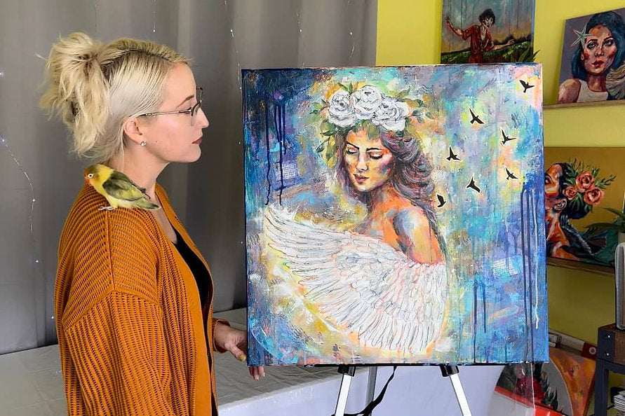 This gorgeous original is a one of a kind collectable. "Concrete Angel" is an acrylic painting on 24x24 canvas and is signed and stamped by emerging artist Michelle Green, owner of Mozzafiato Art. 100% Secured Purchases guaranteed.