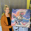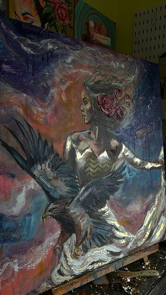 This piece is hand painted with Highest Quality Acrylic Golden and Liquitex Paints. Back-stapled with a wood framed back and ready to hang on your wall. All originals are sealed with varnish to protect the life of the painting. Ships in packaged box bubble wrap and comes with a certificate of authenticity, Handwritten letter from artist, and free stickers. We also offer fast shipping via USPS. Women Owned Business. Made in the USA.