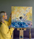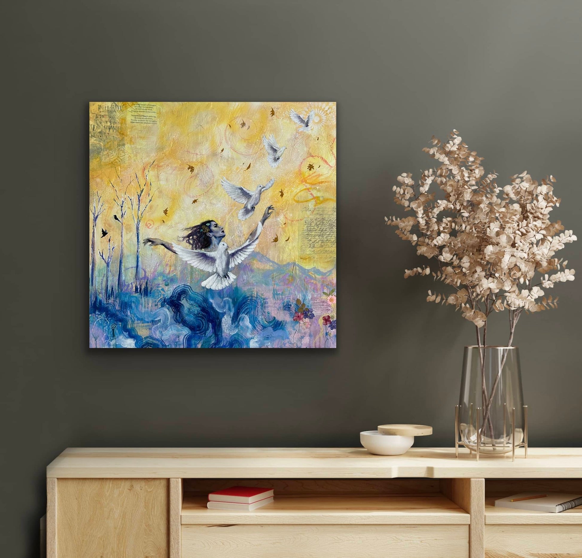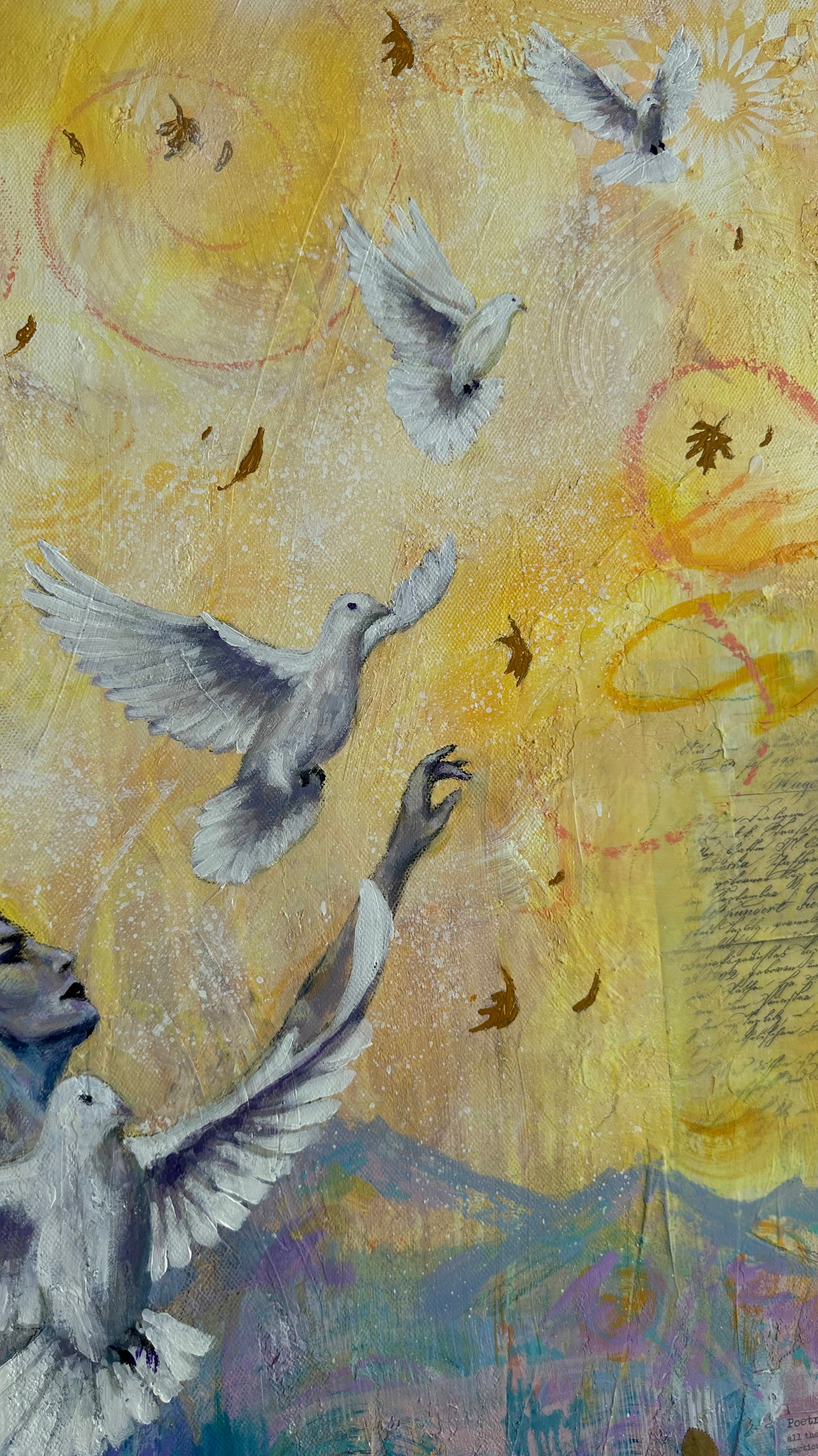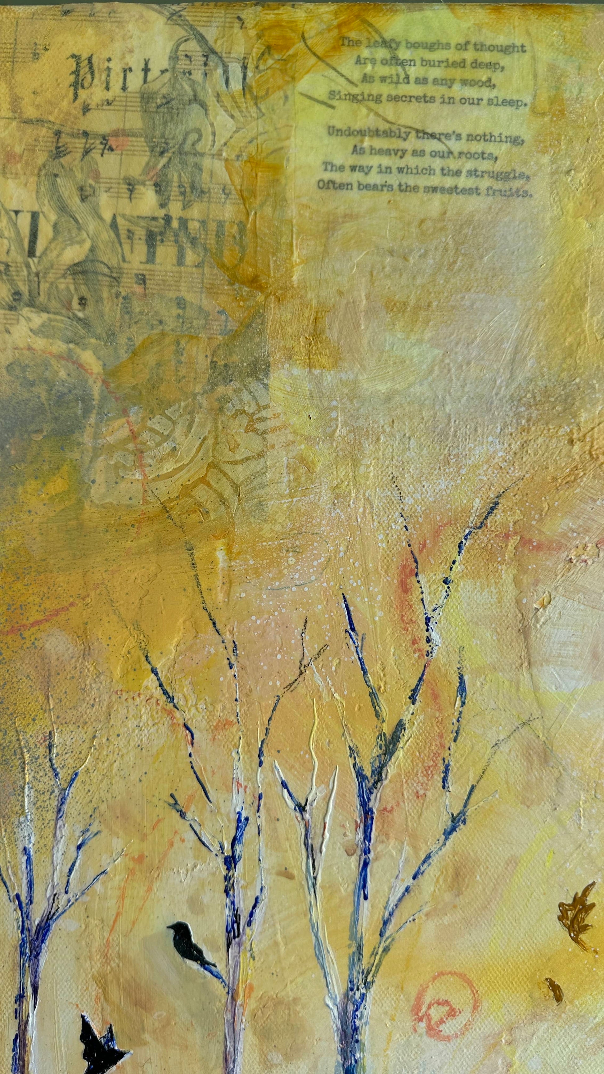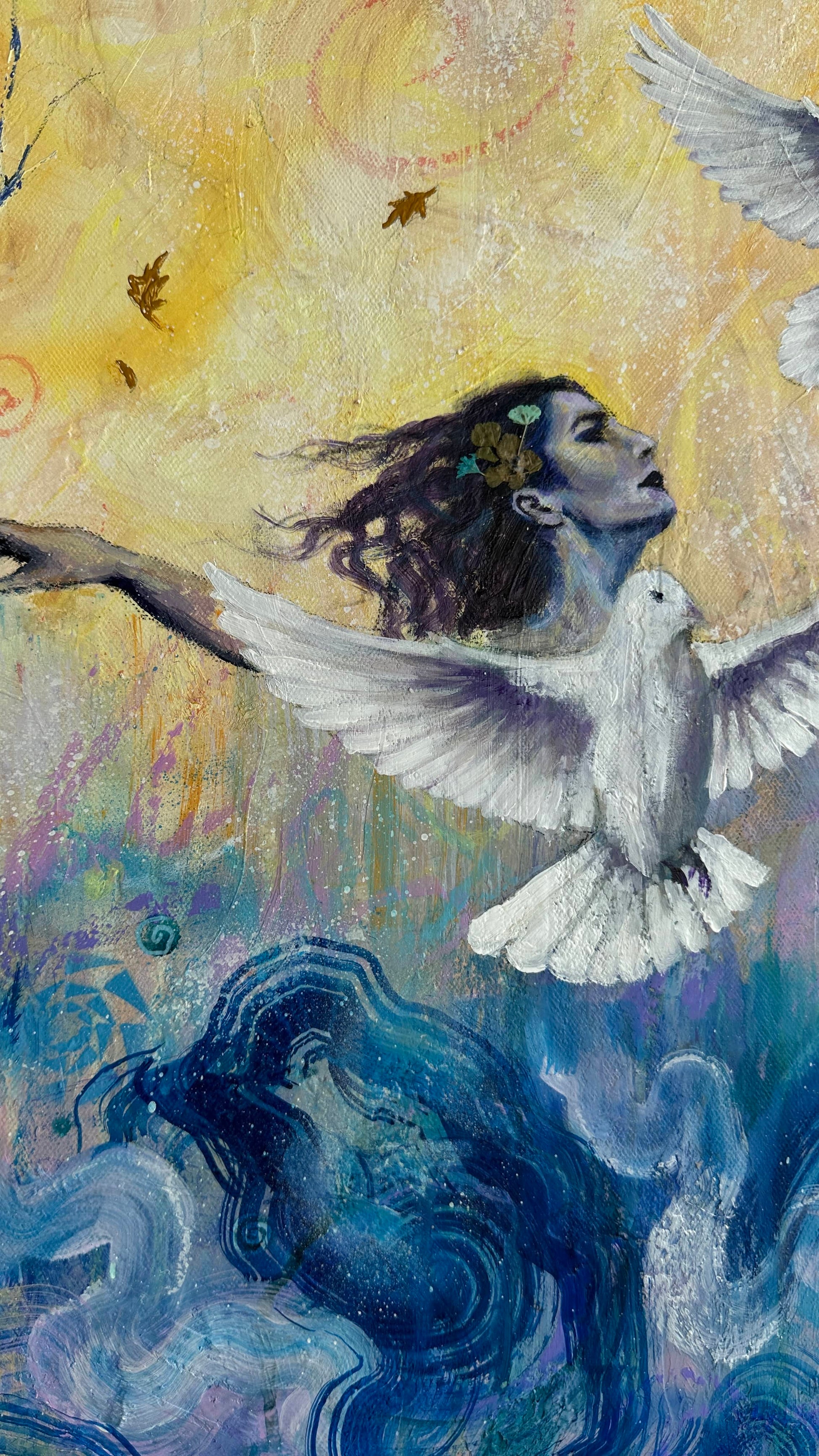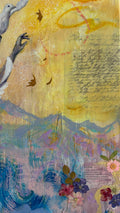 This piece is hand painted with Highest Quality Acrylic Golden, Liquitex Paints, real pressed flowers, thick texture, acrylic inks, charcoal, collage papers, spray paint, and sealed with varnish. Back-stapled with a wood framed back and ready to hang on your wall. All originals are sealed with varnish to protect the life of the painting. Ships in packaged box bubble wrap and comes with a certificate of authenticity, Handwritten letter from artist, and free stickers. We also offer fast shipping via USPS. Women Owned Business. Made in the USA.