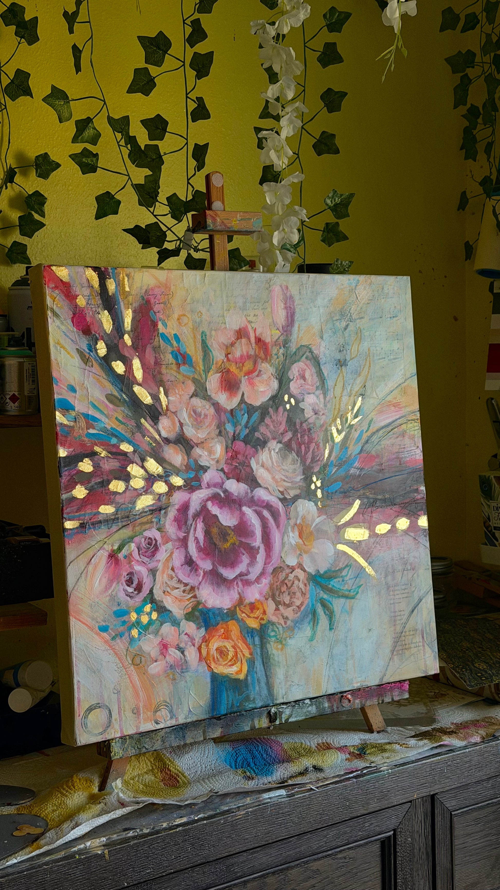 "Flourish" Original Mixed Media 24K Gold Leaf Painting 20x20 Canvas