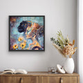This gorgeous one of a kind collectable Canvas Print is signed by emerging artist Michelle Green. You have the option of getting your canvas print embellished in gold and thick texture. 100% Secured Purchases guaranteed. Ships in packaged sealed envelope bubble wrapped and comes with a free sticker. We also offer fast shipping via USPS. Women Owned Business. Made in the USA. Looks beautiful on any wall and ready to hang with a sawtooth hanger already installed. Each print is varnished to protect the life of the painting, signed, and stamped with a certificate of authenticity.
