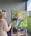 This gorgeous original is a one of a kind collectable. "Harmonic Unfolding" is an acrylic mixed media painting on 24x24 canvas and is signed and stamped by emerging artist Michelle Green, owner of Mozzafiato Art. 100% Secured Purchases guaranteed.