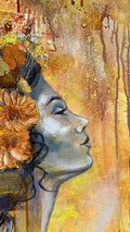 This piece is hand painted with Highest Quality Acrylic Golden and Liquitex Paints, gold leaf, collage papers, gold inks from Japan, and holographic foil. Back-stapled with a wood framed back and ready to hang on your wall. All originals are sealed with varnish to protect the life of the painting. Ships in packaged box bubble wrap and comes with a certificate of authenticity, Handwritten letter from artist, and free stickers. We also offer fast shipping via USPS. Women Owned Business. Made in the USA.