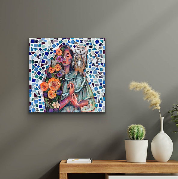 This gorgeous original is a one of a kind collectable, "Introspection" is an acrylic mosaic mixed media painting on 12x12 wood canvas and is signed and stamped by emerging artist Michelle Green. 100% Secured Purchases guaranteed.