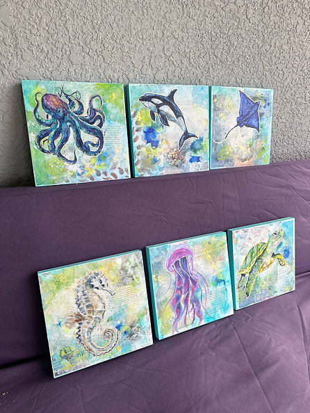 Part of my "Under The Sea" collection. This gorgeous original is a one of a kind collectable acrylic mixed media painting on 10x10 canvas and is signed and stamped by emerging artist Michelle Green, owner of Mozzafiato Art. 100% Secured Purchases guaranteed.