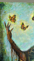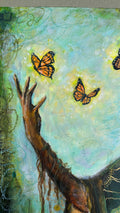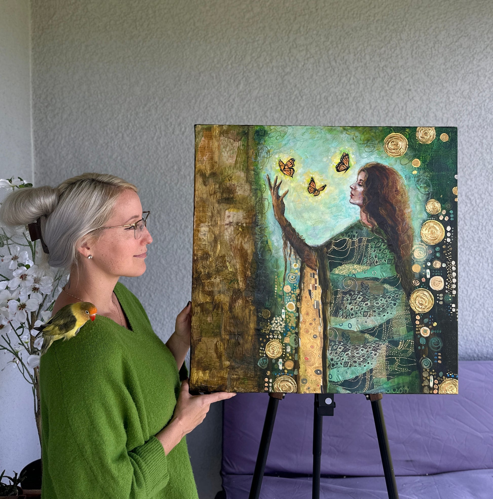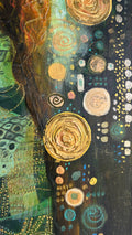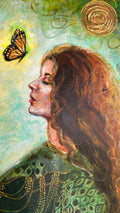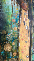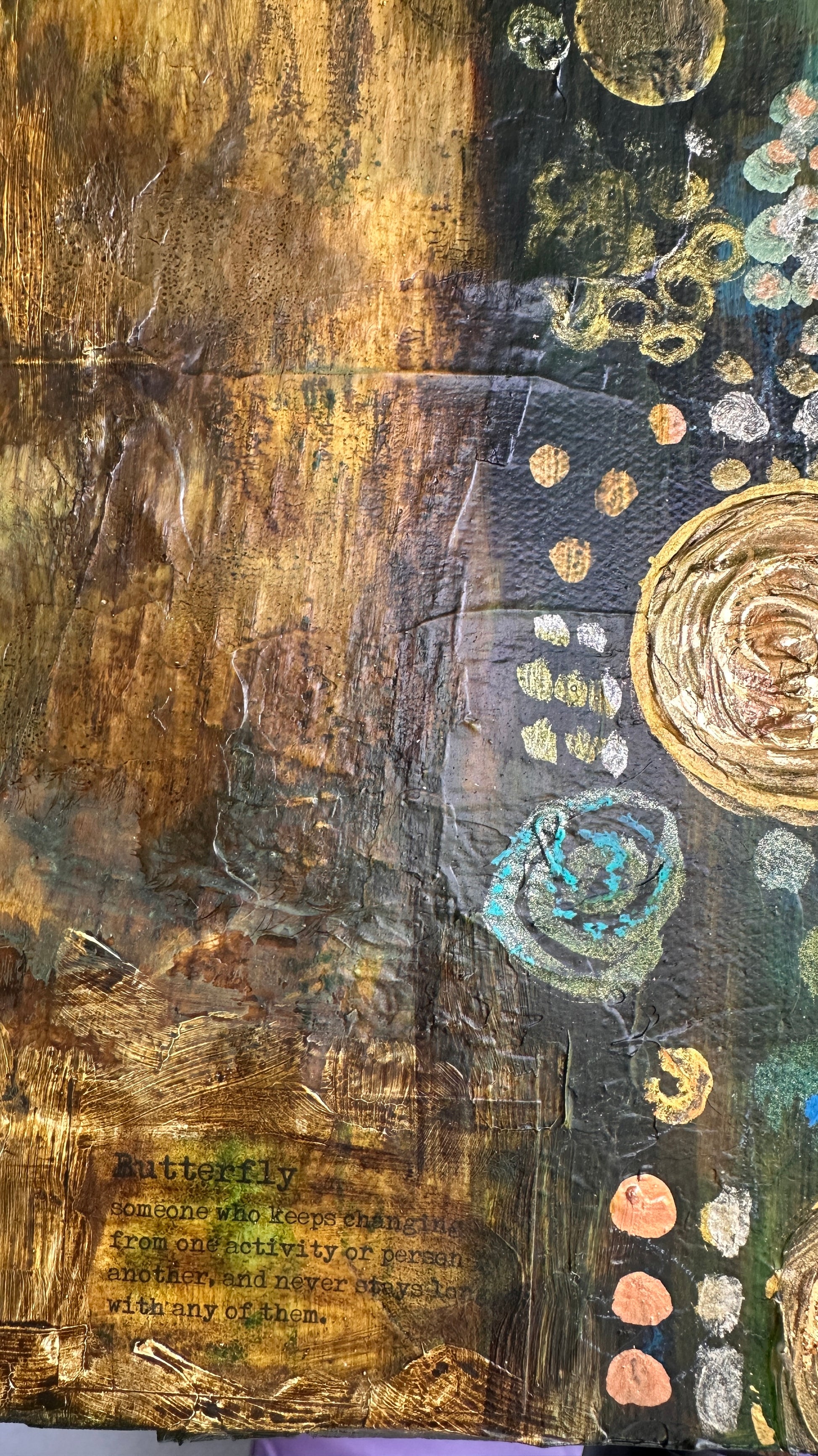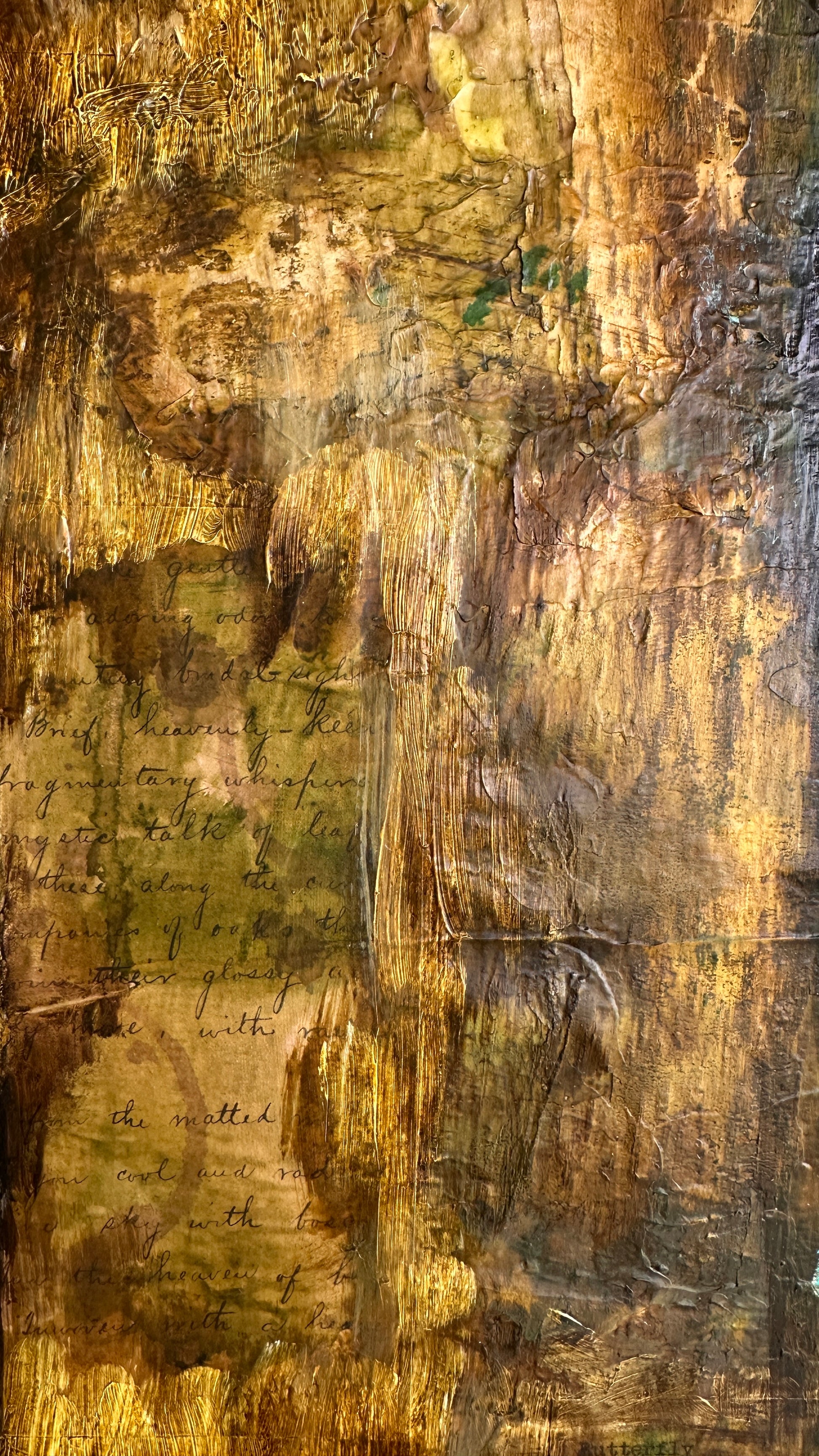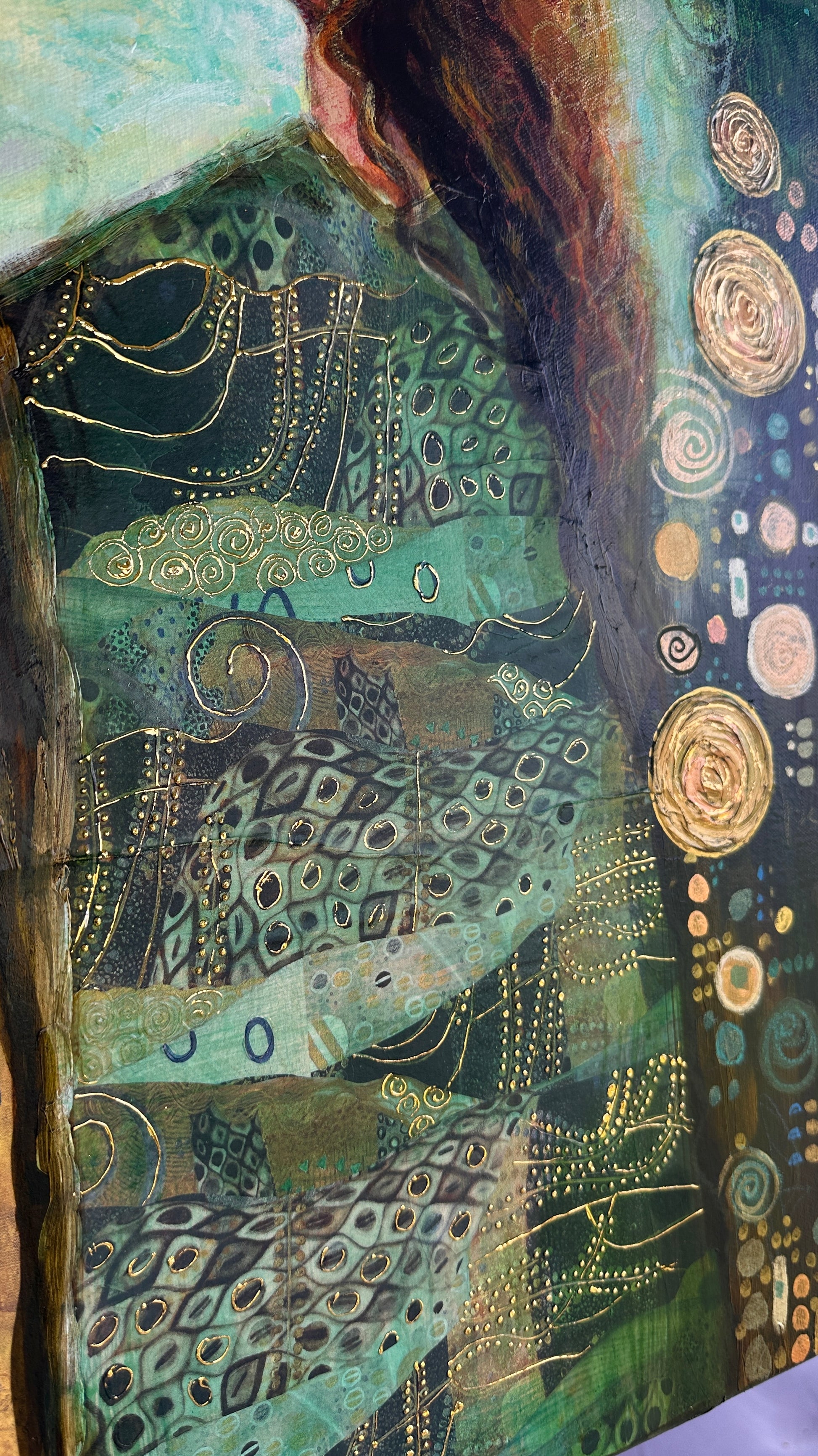 This piece is hand painted with Highest Quality Acrylic Golden and Liquitex Paints, real birch wood pieces, real 24k gold leaf, charcoal, thick texture, collage paper, beautiful metallic golds, and thick texture. Back-stapled with a wood framed back and ready to hang on your wall. Hangers already installed. All originals are sealed with varnish to protect the life of the painting. Ships in packaged box bubble wrap and comes with a certificate of authenticity, Handwritten letter from artist with wax seal, and free stickers. We also offer fast shipping via USPS. Women Owned Business. Made in the USA.