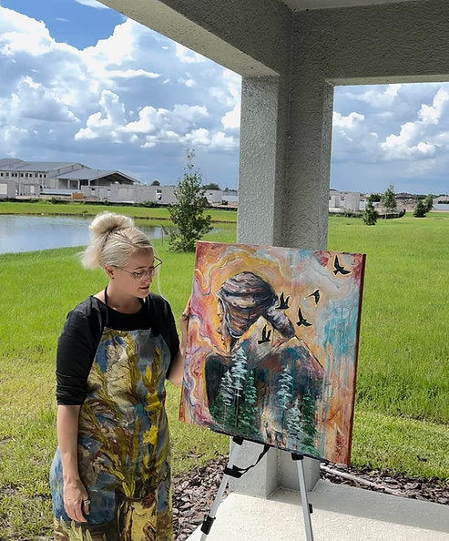 This piece is hand painted with Highest Quality Acrylic Golden and Liquitex Paints. Back-stapled with a wood framed back and ready to hang on your wall. All originals are sealed with varnish to protect the life of the painting. Ships in packaged box bubble wrap and comes with a certificate of authenticity, Handwritten letter from artist, and free stickers. We also offer fast shipping via USPS. Women Owned Business. Made in the USA.