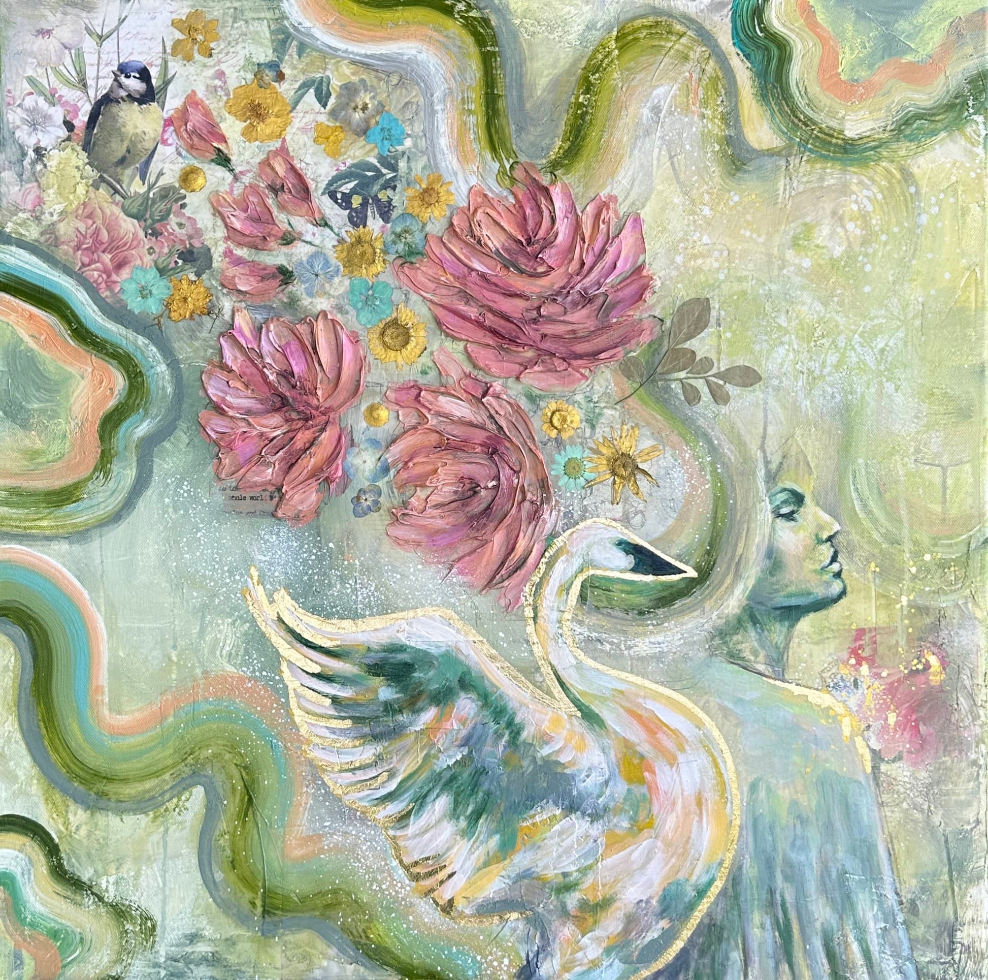 This gorgeous one of a kind collectable Canvas Print is signed by emerging artist Michelle Green. You have the option of getting your canvas print embellished in gold and thick texture. 100% Secured Purchases guaranteed. Ships in packaged sealed envelope bubble wrapped and comes with a free sticker. We also offer fast shipping via USPS. Women Owned Business. Made in the USA. Looks beautiful on any wall and ready to hang with a sawtooth hanger already installed. Each print is varnished to protect the life of the painting, signed, and stamped with a certificate of authenticity.