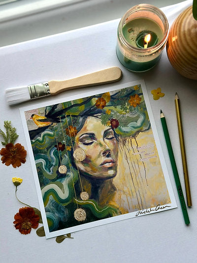 This gorgeous 8x8 one of a kind collectable archival fine art print is signed by emerging artist Michelle Green. 100% Secured Purchases guaranteed. Ships in packaged sealed envelope, bubble wrapped, and comes with a free sticker. We also offer fast shipping via USPS. Women Owned Business. Made in the USA. Looks beautiful in any style frame that you choose!