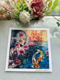 This gorgeous 8x8 one of a kind collectable archival fine art print is signed by emerging artist Michelle Green. 100% Secured Purchases guaranteed. Ships in packaged sealed envelope, bubble wrapped, and comes with a free sticker. We also offer fast shipping via USPS. Women Owned Business. Made in the USA. Looks beautiful in any style frame that you choose!