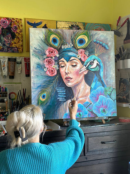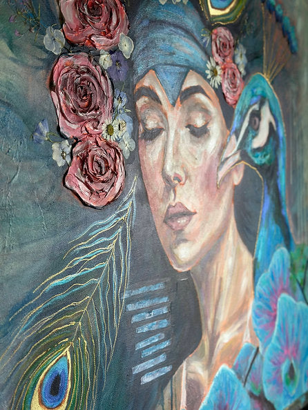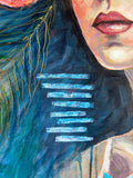 This gorgeous original is a one of a kind collectable. "Plumed Soul" is an acrylic mixed media painting on 30x30 canvas and is signed and stamped by emerging artist Michelle Green. 100% Secured Purchases guaranteed.