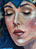 This piece is hand painted with Highest Quality Acrylic Golden and Liquitex Paints, real pressed flowers, and gold leaf. Back-stapled with a wood framed back and ready to hang on your wall. All originals are sealed with varnish to protect the life of the painting. Ships in packaged box bubble wrap and comes with a certificate of authenticity, Handwritten letter from artist, and free stickers. We also offer fast shipping via USPS. Women Owned Business. Made in the USA.