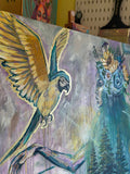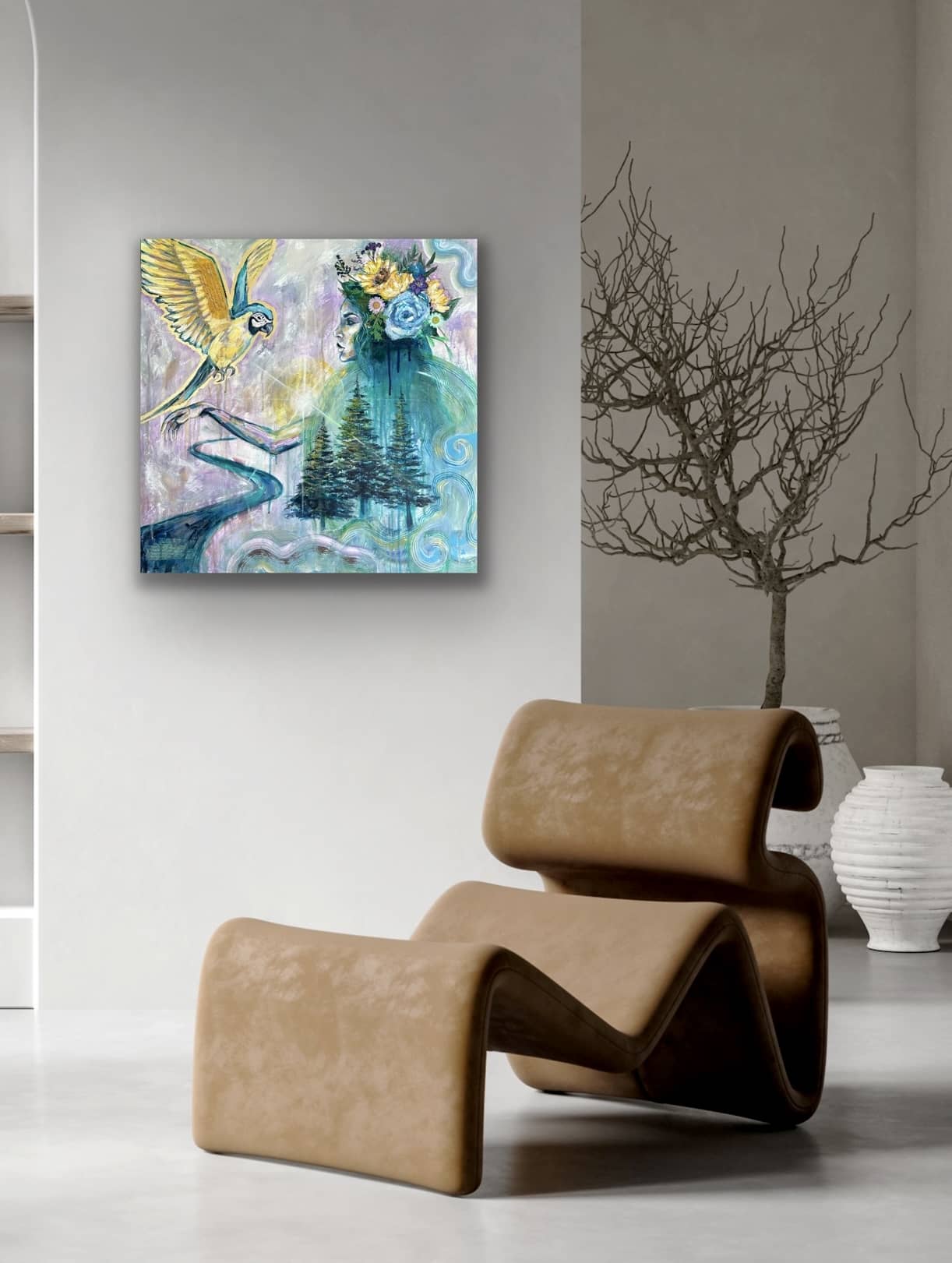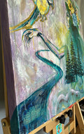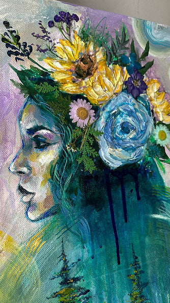 This piece is hand painted with Highest Quality Acrylic Golden and Liquitex Paints. Made using charcoal, colored pencils, acrylic, gold leaf, spray paint, and real pressed flowers. Back-stapled with a wood framed back and ready to hang on your wall. All originals are sealed with varnish to protect the life of the painting. Ships in packaged box bubble wrap and comes with a certificate of authenticity, Handwritten letter from artist, and free stickers. We also offer fast shipping via USPS. Women Owned Business. Made in the USA.