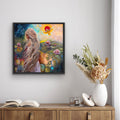This gorgeous one of a kind collectable Canvas Print is signed by emerging artist Michelle Green. You have the option of getting your canvas print embellished in real 24K gold leaf. 100% Secured Purchases guaranteed. Ships in packaged sealed envelope bubble wrapped and comes with a free sticker. We also offer fast shipping via USPS. Women Owned Business. Made in the USA. Looks beautiful on any wall and ready to hang with a sawtooth hanger already installed. Each print is varnished to protect the life of the painting, signed, and stamped with a certificate of authenticity.