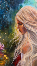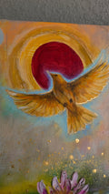 This piece is hand painted with highest quality acrylic, graphite, acrylic inks, collage paper, Posca markers, real 24 gold leaf, thick glass bead texture, carandache crayons, and spray paint. Back-stapled with a wood framed back and ready to hang on your wall. Hangers already installed. All originals are sealed with varnish to protect the life of the painting. Ships in packaged box bubble wrap and comes with a certificate of authenticity, Handwritten letter from artist with wax seal, and free stickers. We also offer fast shipping via USPS. Women Owned Business. Made in the USA