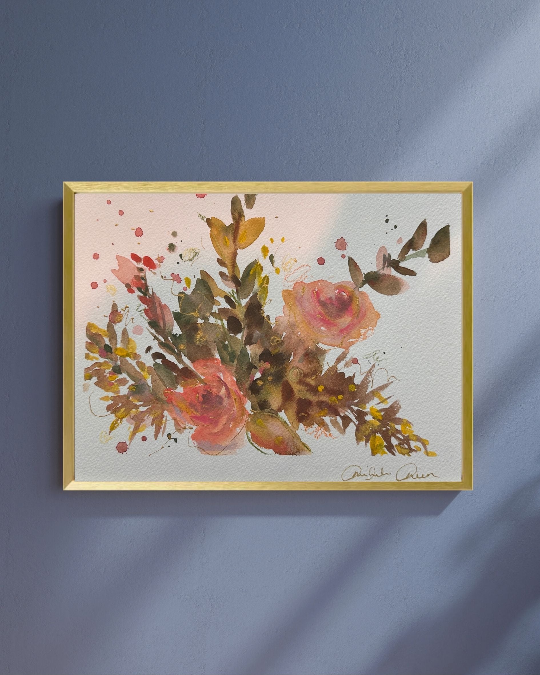 This piece is hand painted with Highest Quality watercolor, colored pencil, gold ink, and crayon with an optional gold frame. 100% real cotton archival watercolor paper and signed by the artist.