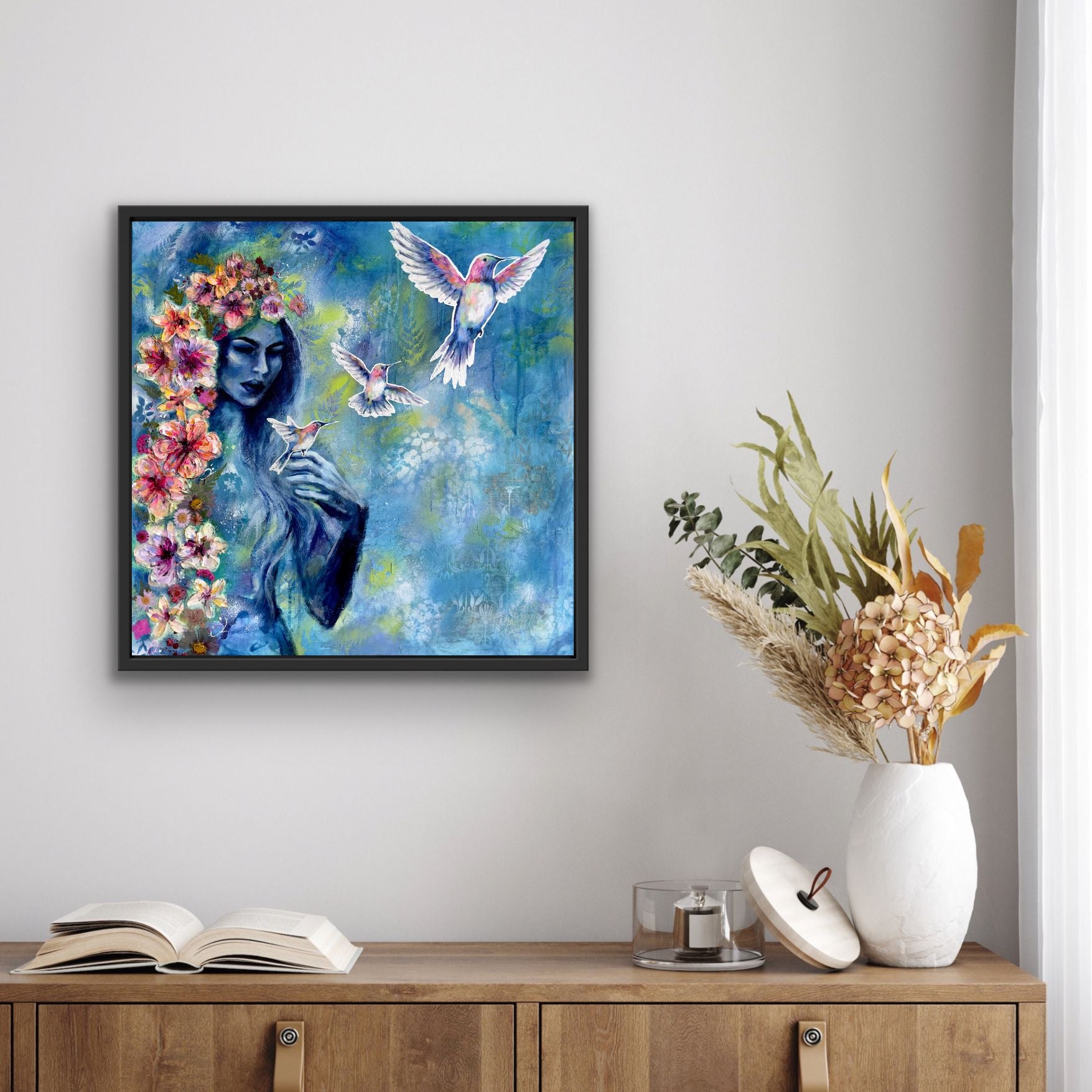 This gorgeous one of a kind collectable Canvas Print is signed by emerging artist Michelle Green. You have the option of getting your canvas print embellished in gold and thick texture. 100% Secured Purchases guaranteed. Ships in packaged sealed envelope bubble wrapped and comes with a free sticker. We also offer fast shipping via USPS. Women Owned Business. Made in the USA. Looks beautiful on any wall and ready to hang with a sawtooth hanger already installed. Each print is varnished to protect the life of the painting, signed, and stamped with a certificate of authenticity.