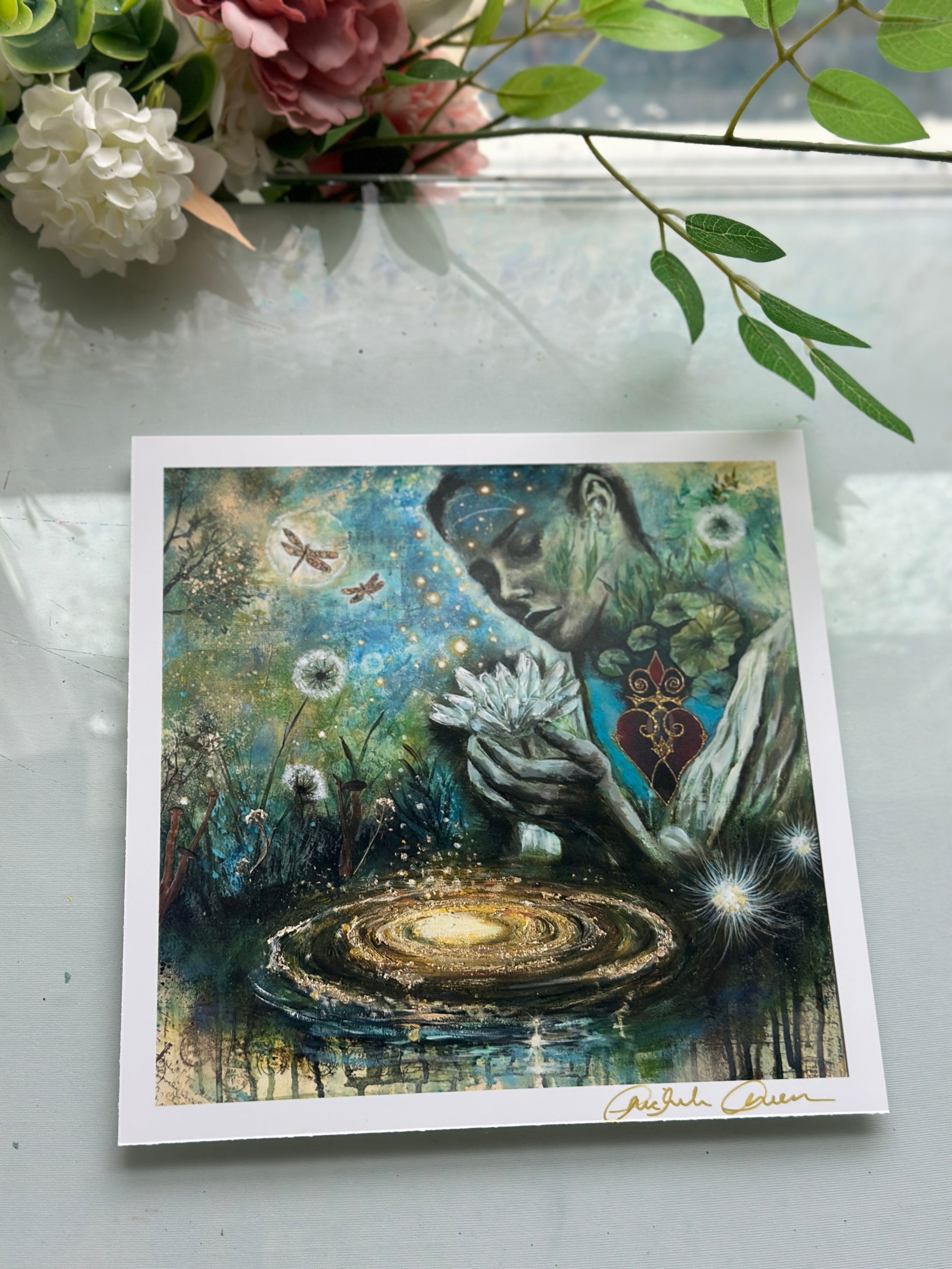 This gorgeous 8x8 one of a kind collectable archival fine art print is signed by emerging artist Michelle Green. 100% Secured Purchases guaranteed. Ships in packaged sealed envelope, bubble wrapped, and comes with a free sticker. We also offer fast shipping via USPS. Women Owned Business. Made in the USA. Looks beautiful in any style frame that you choose!