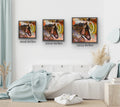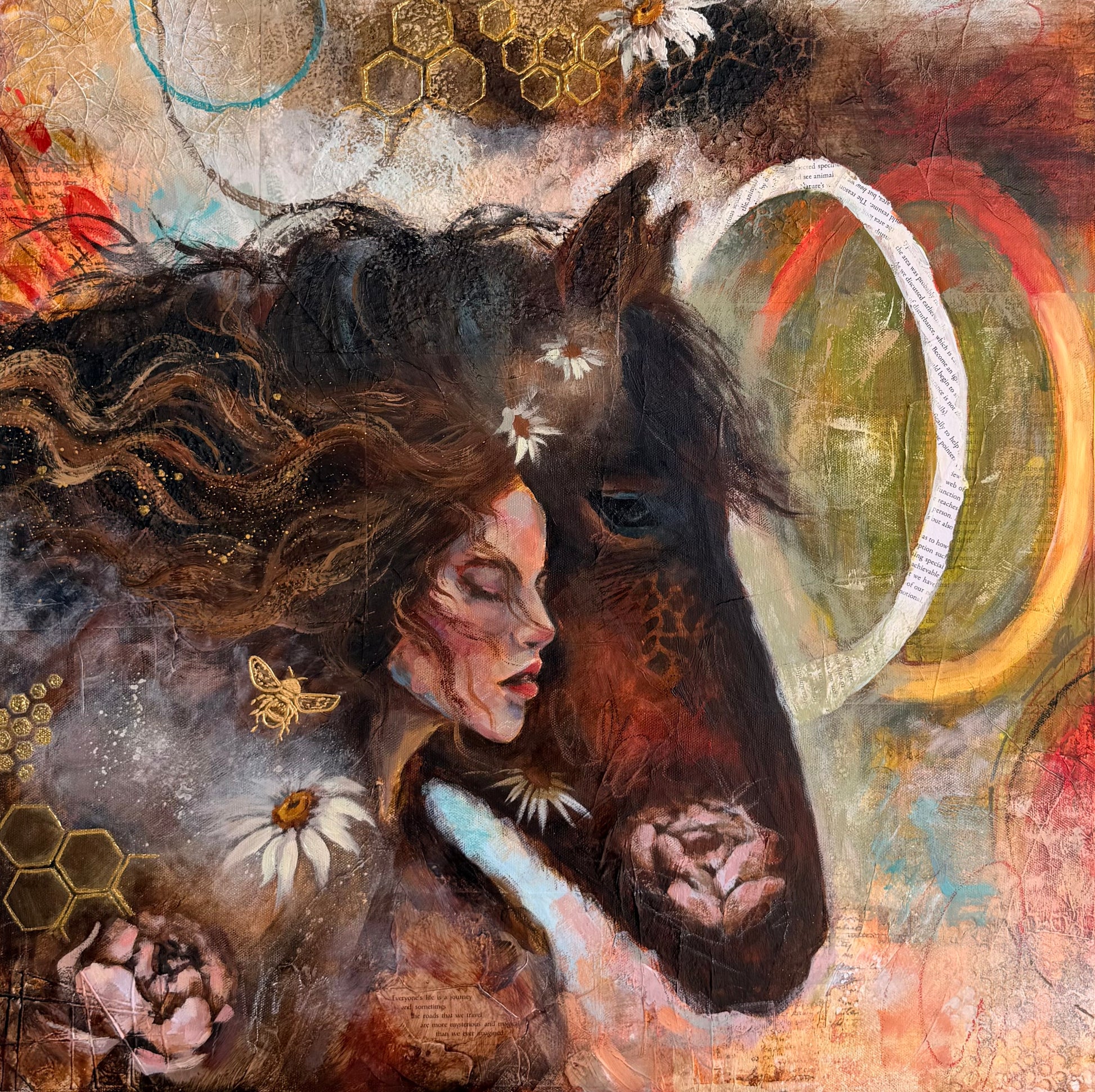 Each piece is a museum quality giclée, personally hand embellished with texture and real 24K gold leaf, adding dimension, light, and a sense of presence that shifts as you move around it. No two are exactly alike.