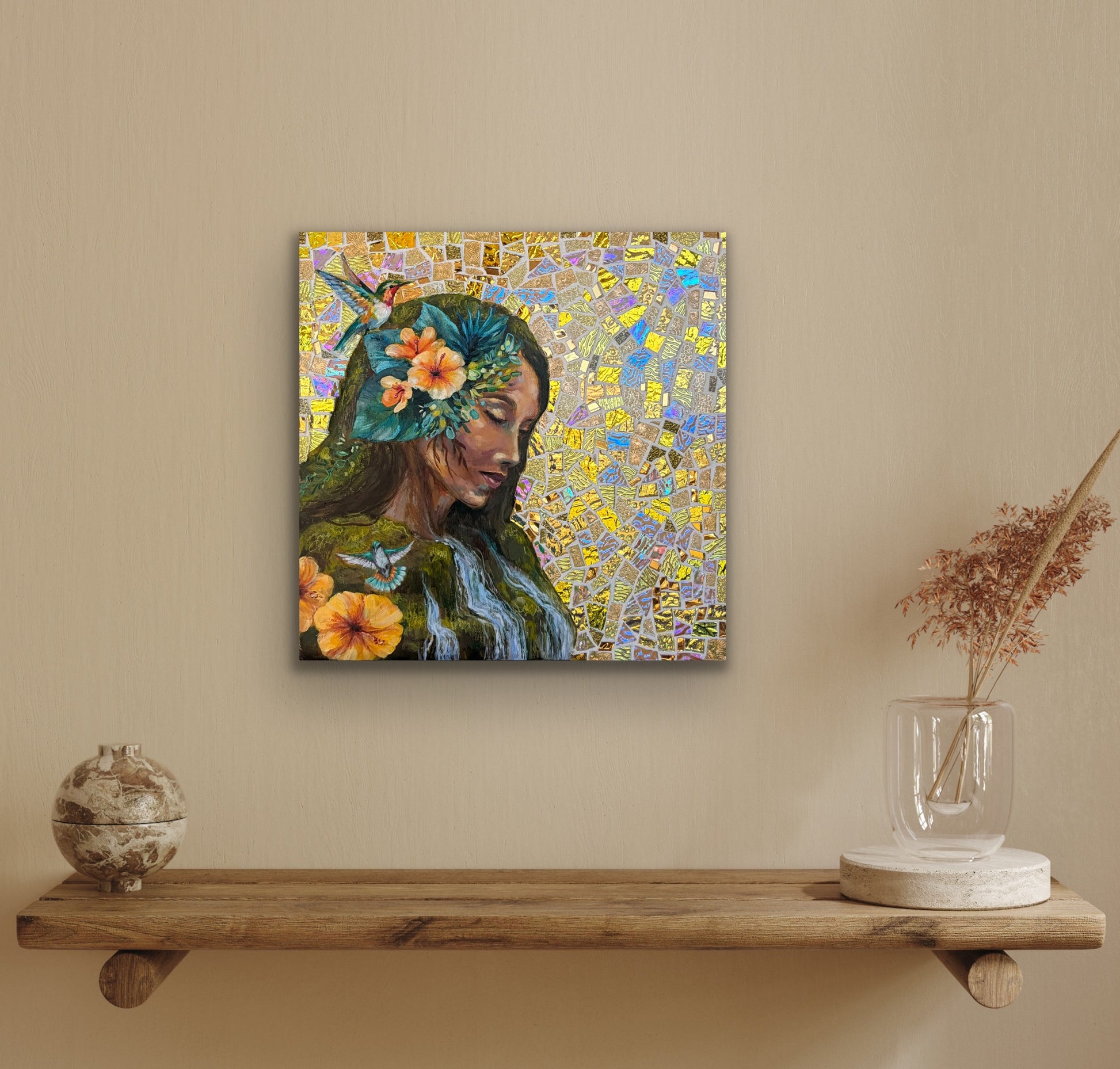 "What The Heart Can Hold" Original Mosaic Painting 16x16 Wood Canvas